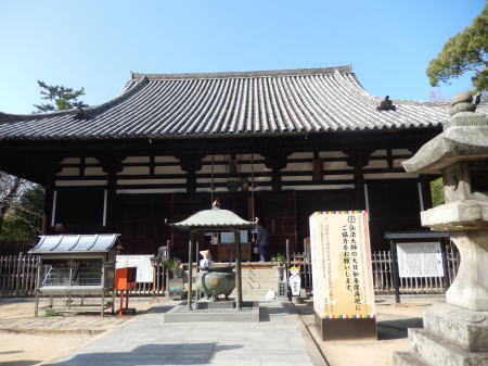 創建当時の遺構をよく残した寺で、旧境内の全域が国の特別史蹟。本堂は、全面と背面に桟唐戸のある鎌倉中期に再建されたものです。また周辺には創建当時の本堂の礎石・33個が点々と配置されていて、唐招提寺の金堂に匹敵する規模を思わせます。また、山門の右手には七重の塔の礎石も残っており、現存していれば京都・東寺の五重塔を超す大塔だったといわれています。寺の創建は聖武天皇の時代。勅命を受けた行基菩薩が巨大な十一面千手観音像を刻み、本尊としました。その後、弘仁年間(810?823)に弘法大師が霊場に定めますが、「天正の兵火」で堂塔のほとんどを焼失。藩主・生駒氏や松平氏によって再興され、今に至ります。