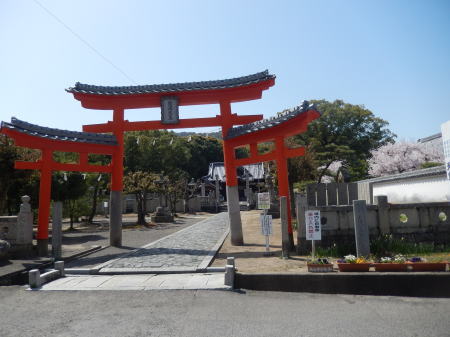 三輪鳥居:天皇寺の正面にある。普通の明神鳥居の左右にやや小さい脇鳥居を組み合わせた珍しい鳥居で、奈良・大神神社など全国で3ヶ所にしかない。この横には源頼朝寄進の下乗石、上段には崇徳天皇社が配置されている。