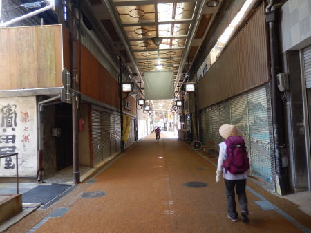 79番・天皇寺へのお遍路道は古い商店街アーケードを抜けていく。
