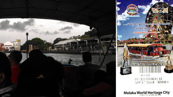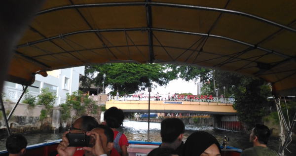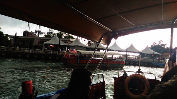 街歩きの最後はリバークルーズで。3人で63.6RM 1653円 雨も心配で中央席に座る。それが後になって幸いした。 |