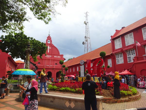 マラッカの中心にあるのは『オランダ広場』。右の建物は「スタダイス旧オランダ総督邸」左奥はキリスト教会(Christ Church) 左手前に