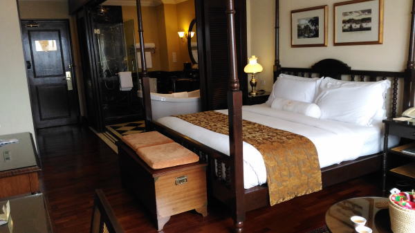 マラッカCentralバスターミナルからタクシーでオールドタウンにあるHOTELマジェスティック(TheMajesticMalacca)に12時到着。チェックインは午後3時~だったが早めに部屋に入れてもらえた。Majesticを翻訳すると、威厳のある.荘厳な.堂々とした.となるが実際の印象は、それよりは軽く、マラッカの古き良き時代の香りのする落ち着いた雰囲気の宿。 |