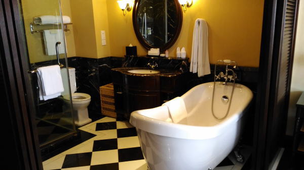 ホテルに戻ってネコ足バスタブのお風呂に交代で入る。 |