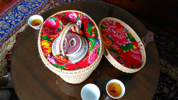 ウェルカムドリンクの可愛い茶器セット。 |