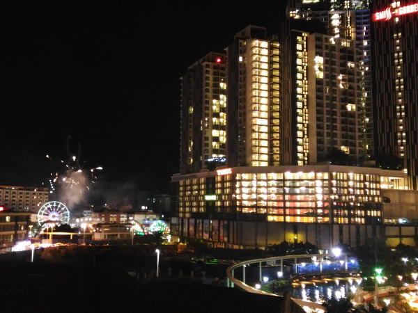 紅白も終わりいよいよ12時になる。マラッカでもささやかにあちこちで花火が新年を迎え打ち上げられた。 |