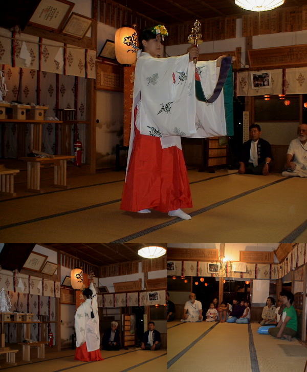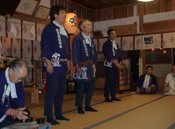 昔の諏訪神社恒例の夏祭りは人の山で賑やかだったのだが人も少なく活気が無い。 射的をしたり、お神楽、太鼓、民謡・小諸馬子唄など見物する。お神楽の後にはおもちが振舞われみんなでもらって帰る。 |