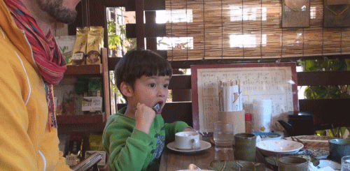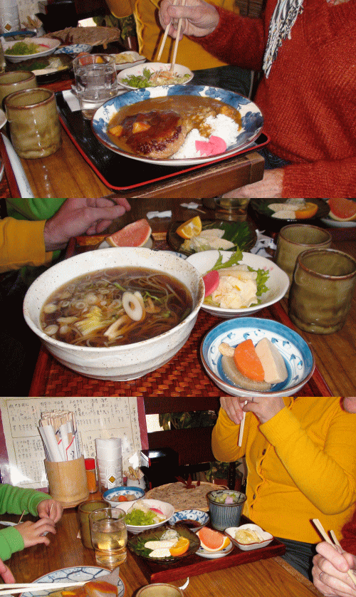忍野から身延山へ向かう途中の食堂でお昼 。 アニエスはハンバークカレー、これもきっと日本の味だろう。 |