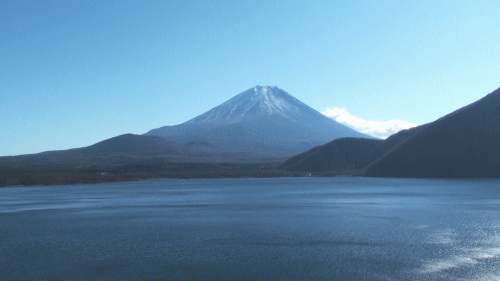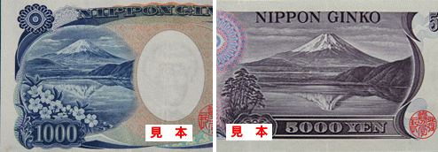 | 翌朝、下部温泉から本栖湖へ。 この見晴台からの富士山の姿が、現在の千円札と、旧五千円札の裏面に描かれている。 お札に描かれた逆さ富士はなかなか見れない。 |