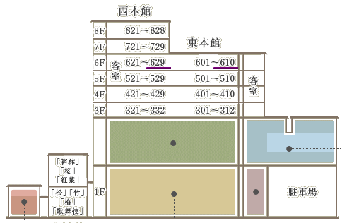 | ホテルの好意で2つの部屋は、6階の角部屋を廊下を挟んで相向かいに用意してくれた。 | |||||||||||||||||||||||||||