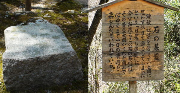 | 瑞宝寺公園にある太閤秀吉が湯治に来た折使用したという『石の碁盤』 |