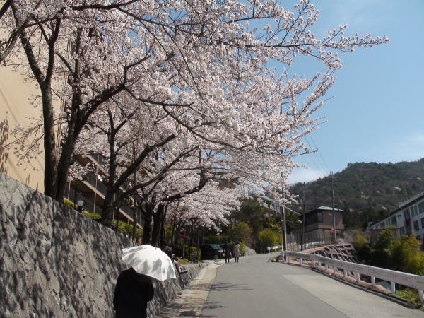 六甲川沿いもところどころに桜が満開にさきほこっている。 |