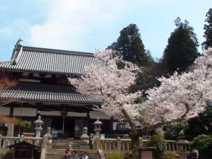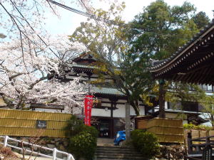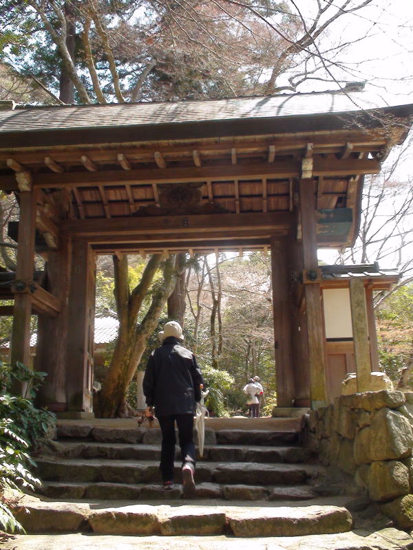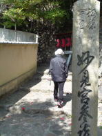 山道には100bおきくらいに西国三十三ヵ所の小さな祠に石の観音が祀られていて、一つ一つ手を合わせながら登って行く。緩やかな坂道は有馬三山のハイキングコースになっていて、春の日差しの中気持ちいい。途中の展望台から有馬温泉の全景が見渡せる。小さな男の子が携帯片手にずっと下の温泉街の家族と連絡とりながら展望台の柵に上って手を振っていた。 |