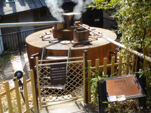 中国人客が多く裸だとまったくわからず挨拶すると何か照れたような態度で、仲間同士の会話でやっと中国人とわかる。今は反日の嵐の中の国同士だが個々の人は同じ人間という感じで接しられる。 内風呂の大浴場は普通の温泉だが、木枠の露天風呂は有馬温泉では金泉(含鉄ナトリウム塩化物強塩高温泉)と言われる茶色のいかにも効きそうなお湯でつい長湯してしまう。 |