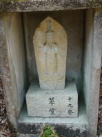 | 有馬温泉 落葉山には西国三十三ヵ所の石像が100b位間隔で坂道に並んでいる。一箇所づつ手を合わせながら妙見寺へ向かって登っていく。 |
