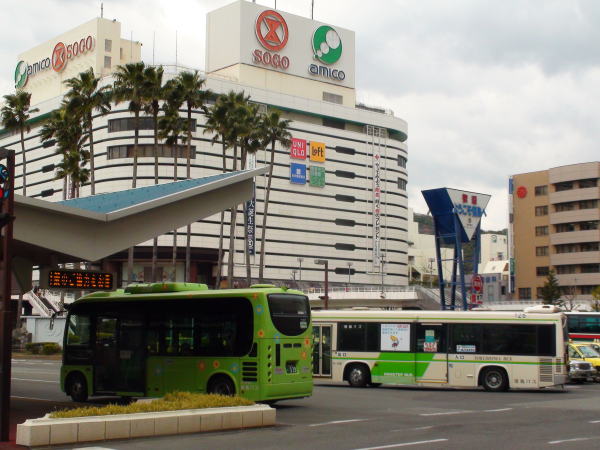 太閤通りから太閤橋のJR高速バス乗り場へ。桜のシーズンなので沢山の乗客で満席だった。新神戸に11:35着。 以前泊まった駅前のクラウンプラザホテルロビーで時間まで休む。