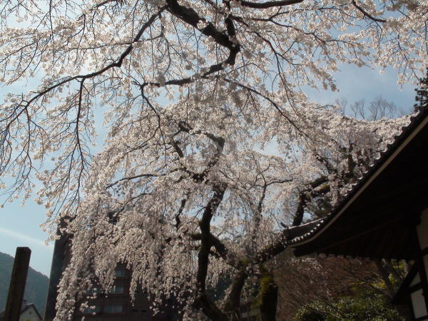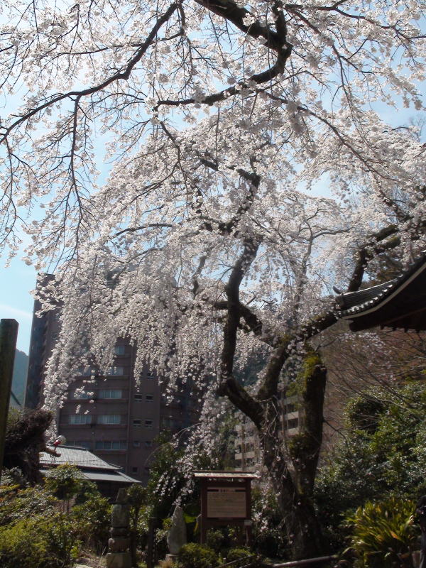 落葉山を下山して善福寺脇までくるとお寺の境内は名物の糸桜見学の人でいっぱいだった。