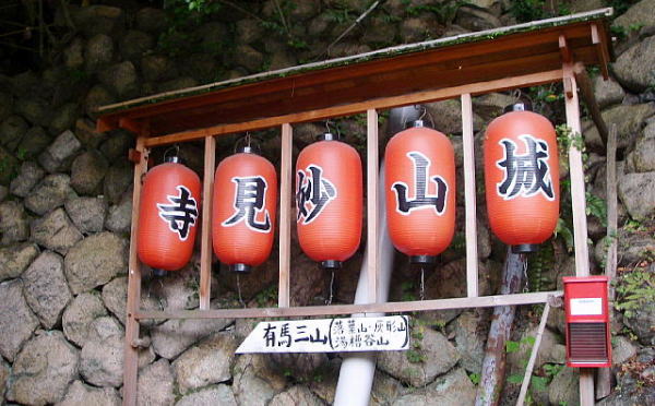 太閤通りに戻り観光案内所に寄り有馬温泉ウォーキングマップをもらう。いろいろな散歩コースがあり、その中の瑞宝寺公園コースを歩くことにする。 観光案内所を出て、スタートはねね橋から、橋を右折して中の坊瑞苑の前を六甲川沿いに山に向かって進む。 |