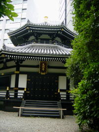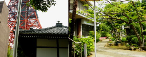 その辺からは見慣れた東京タワーの懐かしい雄姿が目の前に迫っていた。タワーを背にして通りの向こうに金地院の参道が見える。境内から振り返ると東京タワーが覆いかぶさるように寺を見下ろしている。この寺も玄関のチャイムで納経をお願いする。ここでも中にある本堂にあがってお参りさせていただく。冷房しているのか自然なのか、本堂は涼しくひんやりしていた。