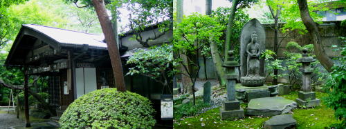 坂をあがり切ったさきに目指す安養寺の山門がひっそりと建っていた。入ってすぐ右の本堂にお参りして左手の玄関のチャイムを押すと住職さんらしき方が納経を引き受けてくれたので、境内を見学しながら待つ。納経帳を受け取り来た道をまた神楽坂下方面に向かって歩く。商店街中ほどに毘沙門天・善国寺がにぎやかな飾りつけのまま祭りの名残をいっそう残していた。軽く手を合わせて地下鉄飯田橋駅に戻り南北線で永田町に向かう。 |
