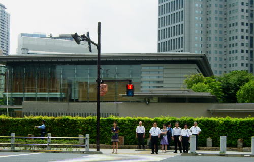 国会議事堂前交差点までくると斜め前にはニュースでたびたび見慣れた、首相官邸だ。もちろん中入らず通りの反対側から撮影する。その隣に幽霊が出ると話題の総理大臣公邸を過ぎ、次にアメリカ大使館へ向かって歩く。 |