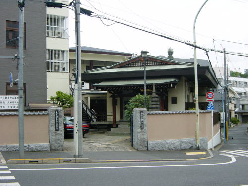 空気の悪い道路をしばらく歩きやっと西麻布交差点にたどり着く。地図を拡げて22番長谷寺の位置は交差点を渡り左斜め進んだ先、ゆるい坂を登っていくと正面の寺院の屋根が見える。