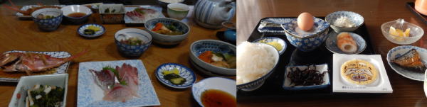 遍路宿・徳増の夕食・朝食は地産地消で暖かい。