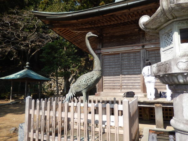 また、境内の山容がインドで釈尊が説法をしたと伝えられる霊鷲山に似ていることから、山号は「霊鷲山」と定められた。以来、次の平城天皇、嵯峨天皇、淳和天皇と歴代天皇の帰依が篤く、また源頼朝や義経、三好長治、蜂須賀家政などの武将にも深く信仰されて、七堂伽藍の修築や寺領の寄進をうけるなど寺運は大きく栄えた。阿波一帯の寺が兵火に遭遇した「天正(1573?92)の兵火」にも、山頂の難所にあるためか難を免れている。「お鶴」「お鶴さん」などと親しまれ、山鳥が舞う大自然そのままの寺である。 |
