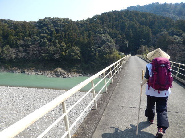 小学校でおトイレのお接待を受けて那賀川の大井橋を渡る。四国はどこも清流でここもきれいな流れだ。