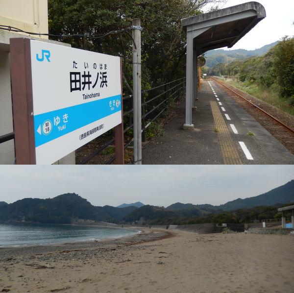 夏の海水浴時期だけ開業する田井の浜駅、今は電車は通過していく。