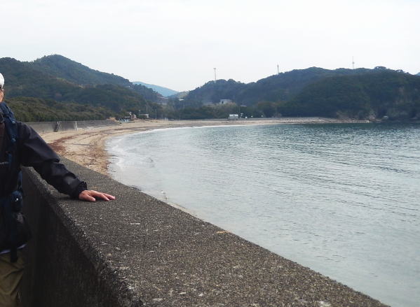 田井の浜海岸をMの足の具合を確認しながらゆっくり歩く。思ったより回復していたが無理をしないで注意しながら歩く。