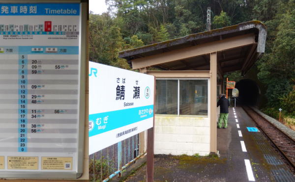 Mは足の痛みがまだ残っている。鯖大師最寄の鯖瀬駅から海部駅まで電車に乗り海部からまた歩き始める。