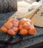 生名バス停で着替えていると近所の方から早速みかんのお接待を受ける。 |