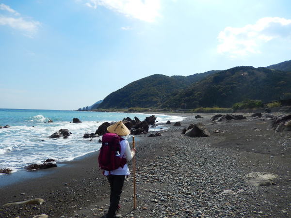 高知県室戸市佐喜浜海岸を行く。