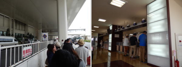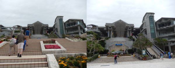 レンタカー営業所までは那覇空港到着ロビーを出て送迎バスに乗る。レンタカー会社の送迎バスの待合所は長い列で、しばらくしてきたバスに乗ると直ぐに女性担当者からレンタル手続きの説明があり書類が配られる。その書類に必要事項を書き込み、営業所に着くとカウンターに進み、書類を提出、車に案内と、流れ作業で効率いい。その手際の良さは、沖縄には電車が走っていないせいかレンタカーの利用がとても多いだけのことはあると感じた。