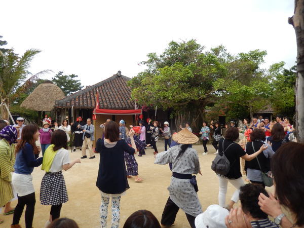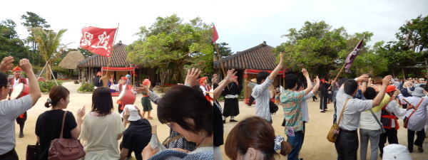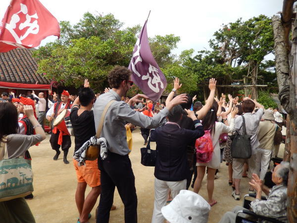 道ジュネー後半は大太鼓をもちいてエイサーを踊り、見物客をまじえながらのカチャーシー(踊り)になる。