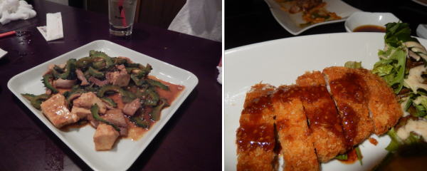 ゴーヤチャンプル(みそ味で昔ながらの) ミルフィーユとんかつ(薄切り豚肉数枚重ね)