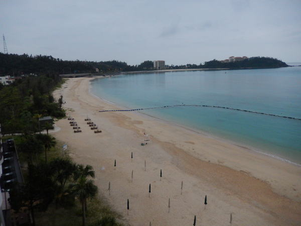 ホテル前の喜瀬ビーチは遠浅の穏やかな砂浜。