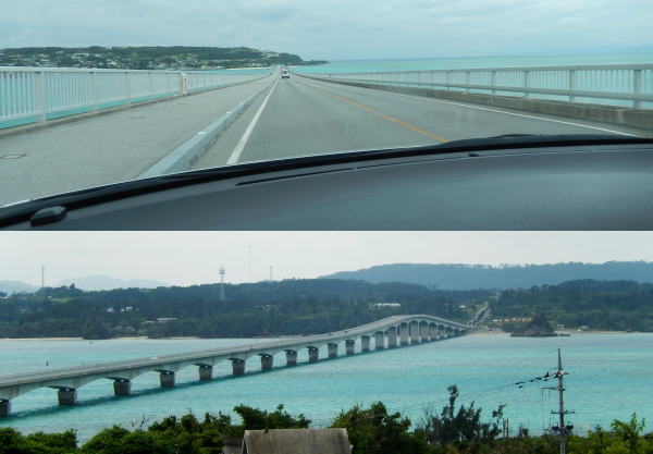 今帰仁村を抜けワルミ大橋を渡り屋我地島、古宇利大橋から古宇利島に入り、島を一周する。