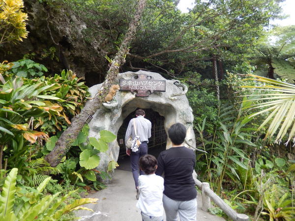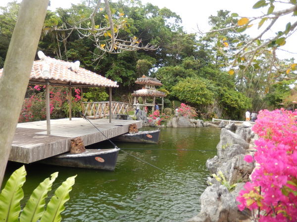 琉球王朝の尚敬王が「一万人が座れる広い原っぱ(万毛)」と評したことに由来する、沖縄海岸国定公園・万座毛岸壁には象の鼻の形の岩が付いている。まわった先は万座ビーチ。