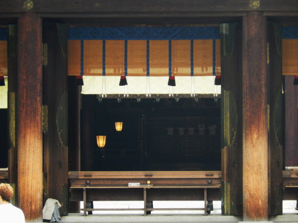 | 長殿前のベンチでゆっくり神宮の厳粛な静けさに浸る。 |