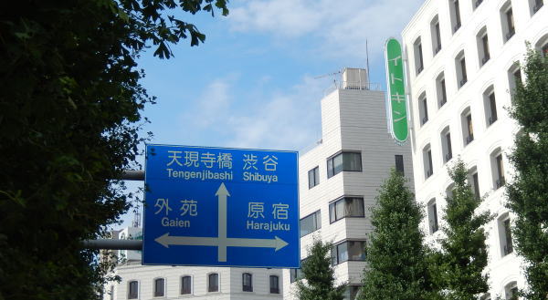 明治神宮北参道を出て明治通りへ。地下鉄外苑前駅間近の江戸三三ヶ所24番まで歩いていく。 |
