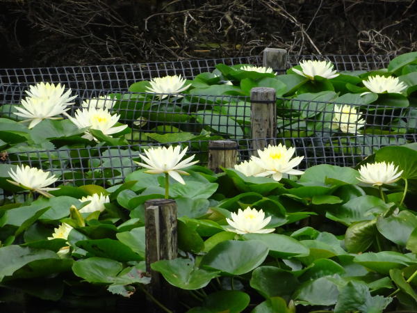 南池の中程に見事な睡蓮が咲き誇っている。 |