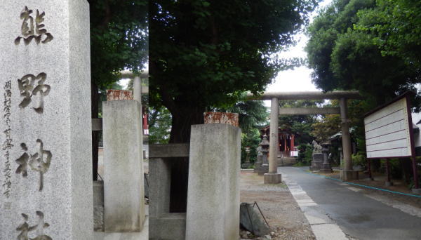 神宮前交差点と秩父宮ラグビー場の中程裏通りの熊野神社。手を合わせて通る。 |