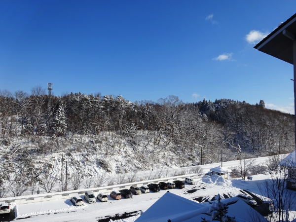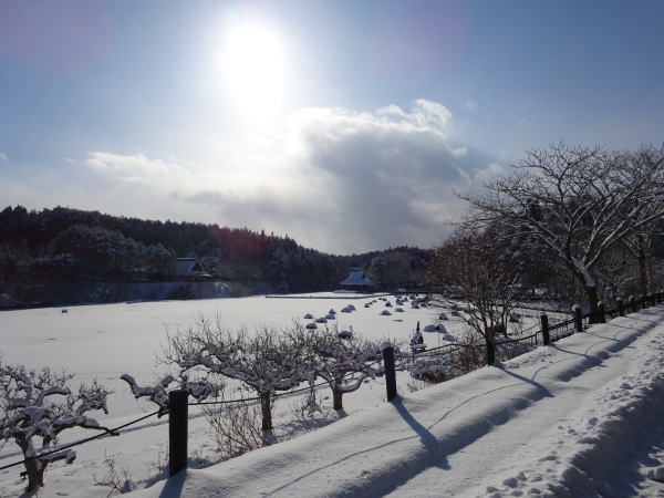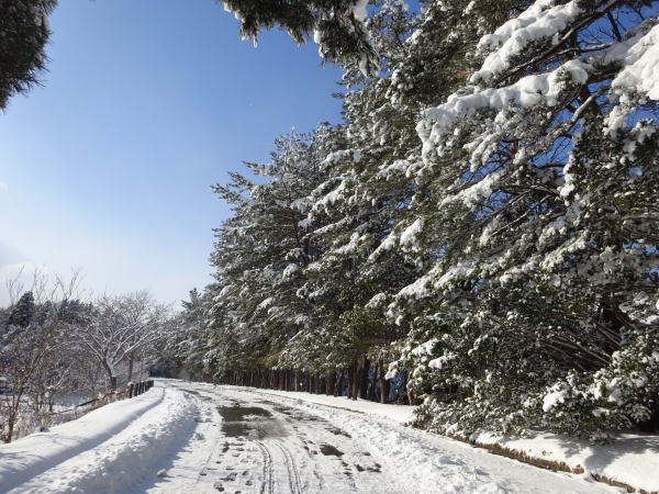 元旦の朝、昨夜の雪であたり一面真っ白。 |