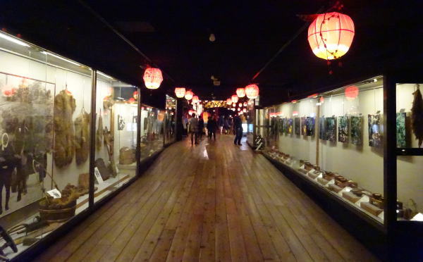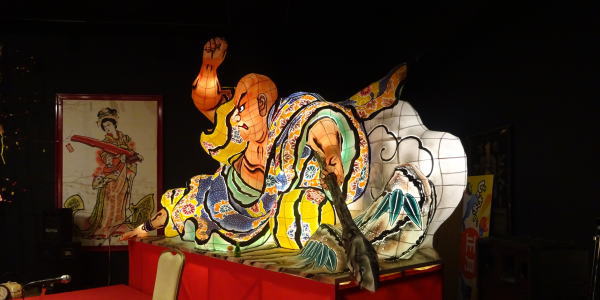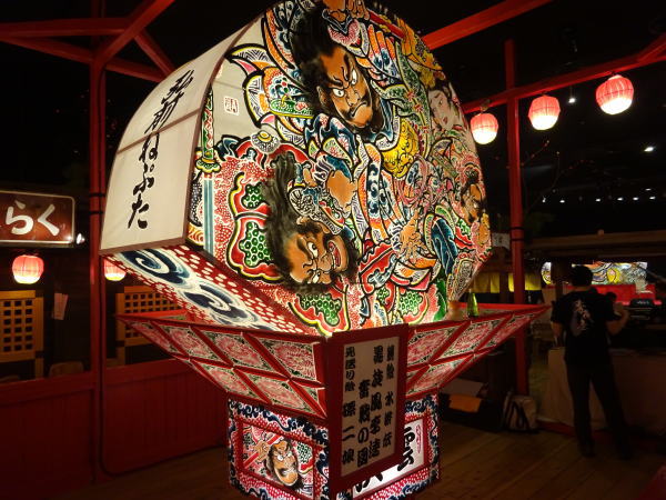 一階の中心『じゃわめぐ広場』には青森屋らしくねぶたがいろいろ。 |
