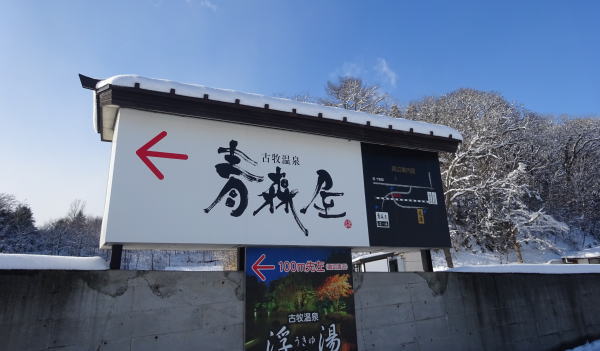 参拝後近くのバス停から駅に戻るつもりだったがバスの本数が極端に少なく時間もないのでタクシーが通るの待って駅に戻る。13:30発の青森屋の送迎バスは八戸西口から、名前を告げ乗車、大型バスだが年末らしく満席。 |