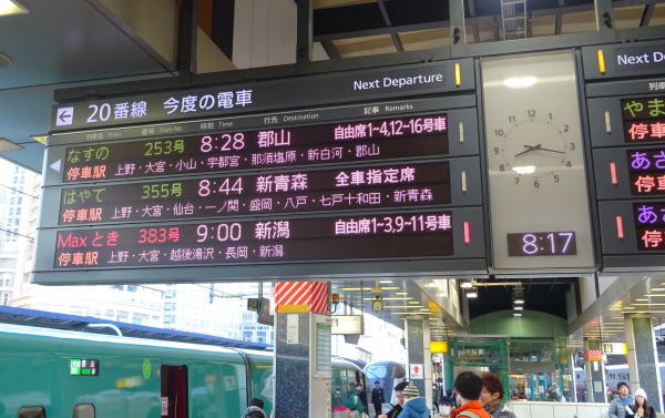2014年12月31日みんな風邪気味のなか午前8:00時 東京駅中央乗換通路『駅弁屋祭』前で待合せ。人気のお弁当屋さんらしく、店内は大混雑。レジに並びお弁当3つ購入 東北新幹線ホームへ。 |