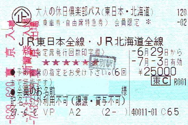 | 大人の休日倶楽部パス | ||||||||||||||||||||||||||||||