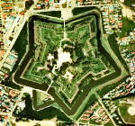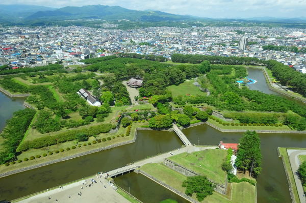 | 下を歩いても形状がわからないのでタワーに上がる。上から見るとなるほど五稜郭だ。 |