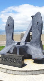 | 連絡船の錨も展示 | 今日の宿は桟橋近くのホテル『ラビスタ函館ベイ』フロントで荷物を預けて近くの魚市場通 停留所からレトロな函館市電に乗って五稜郭へ。 |